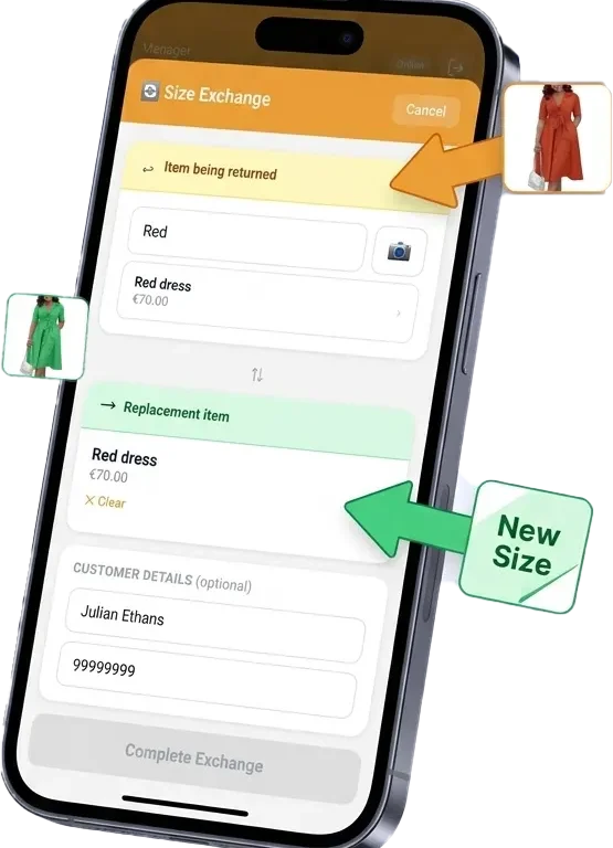 The ultimate tool for fashion and retail. Swap a returned item for a new size or SKU on a single screen.